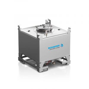 Su altura máxima de 1.160 mm y su diseño específico permiten utilizar el SCHÄFER Cube en líneas de llenado estandarizadas para GRG de plástico.